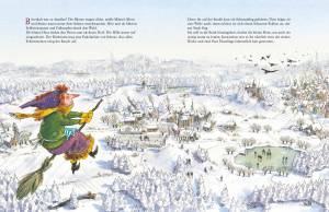 Im verschneiten Städtchen hilft die kleine Hexe dem frierenden Maronimann und feiert mit den Tieren im Wald ein zauberhaftes Winterfest.